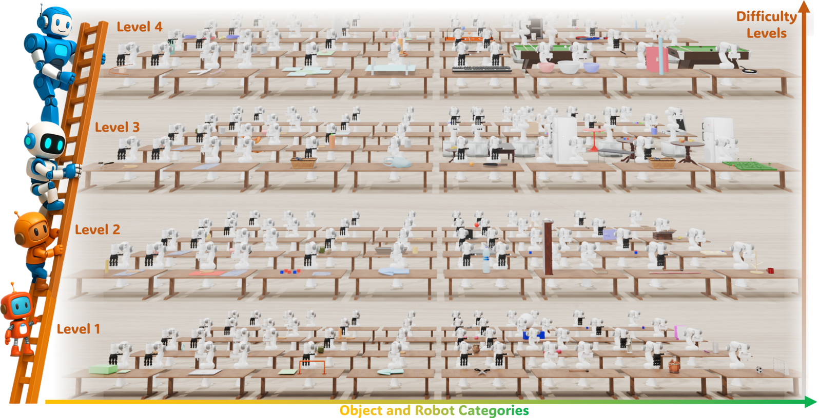 We introduce ManiLadder, a large-scale simulation benchmark designed to quantitatively assess progress in robotic manipulation intelligence and capacity. It turns "How difficult a task can my algorithm solve?" into a measurable ladder to climb.